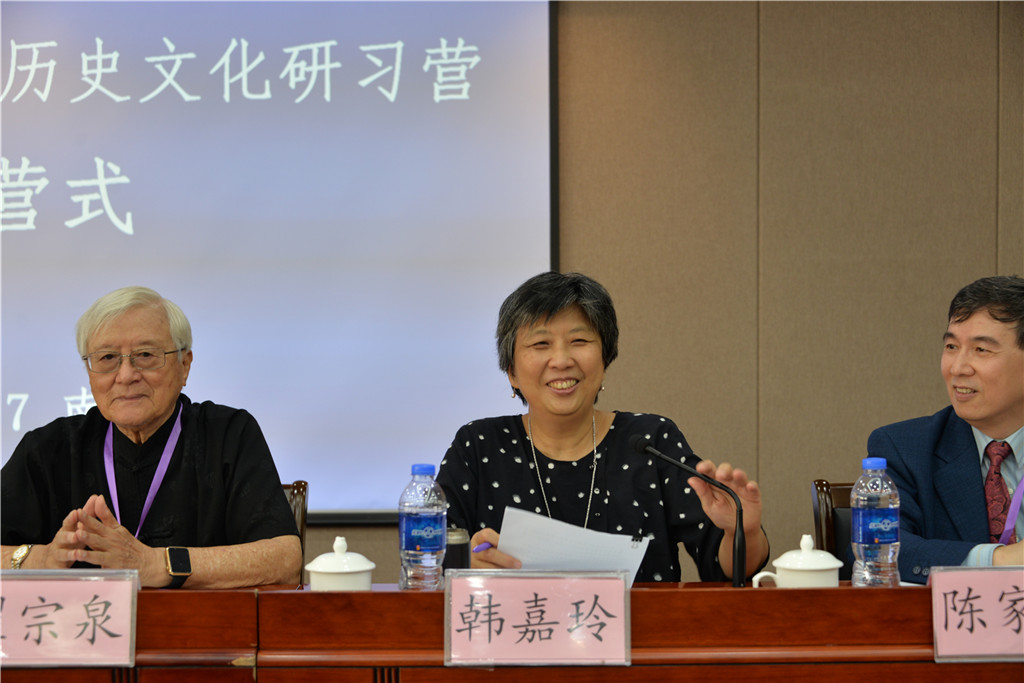韩嘉玲副会长在致辞中说:“自2014年起,台湾同学会就和台盟南京市委合作,每年暑期邀请台湾中小学教师来南京参加历史文化研习营。通过研习,营员们加深了对中华历史文化的认识,增强了对两岸关系和平发展的信心。因此这一活动深得台湾广大中小学教师的欢迎。”