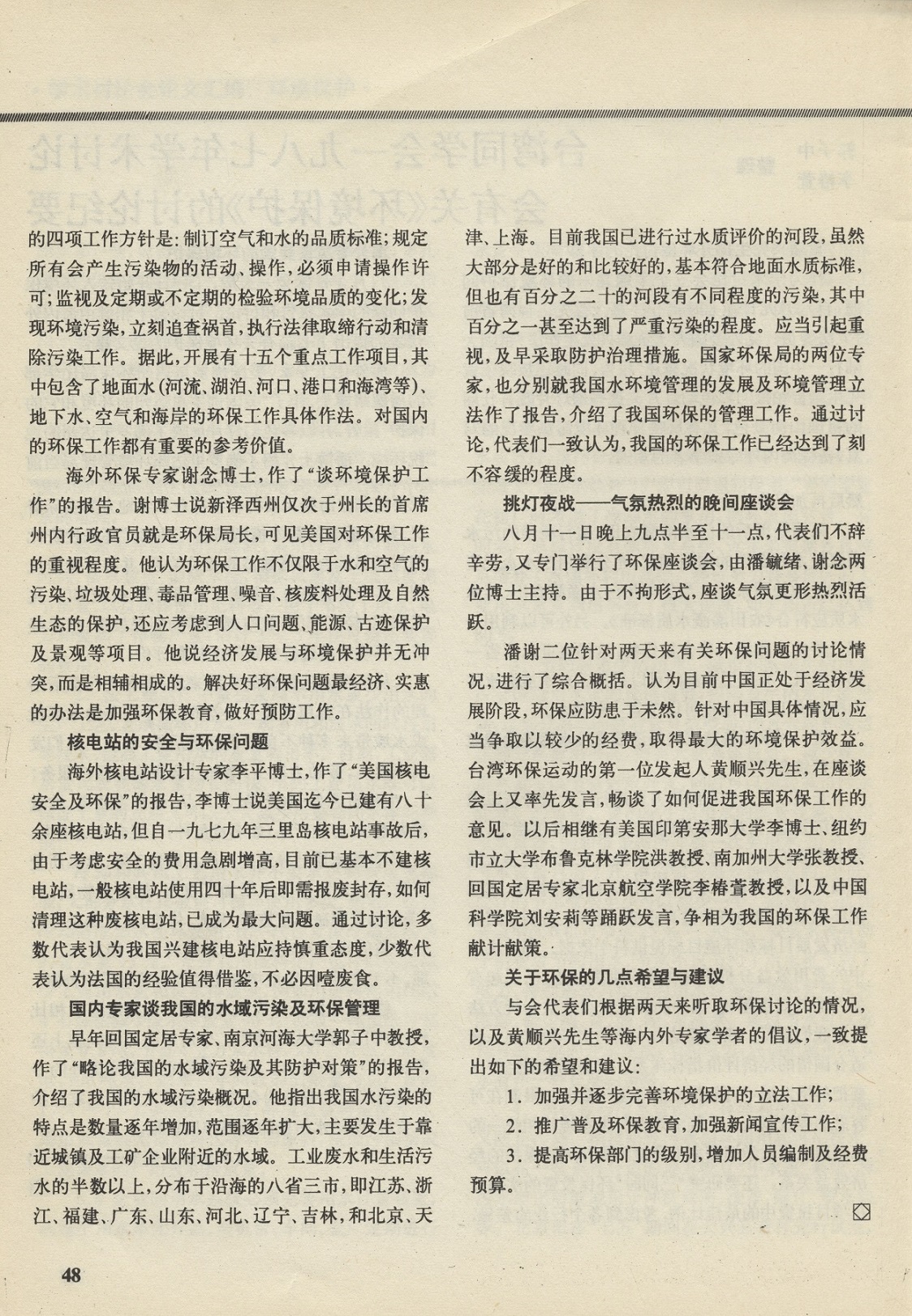 台湾同学会一九八七年学术讨论会有关《环境保护》的讨论纪要